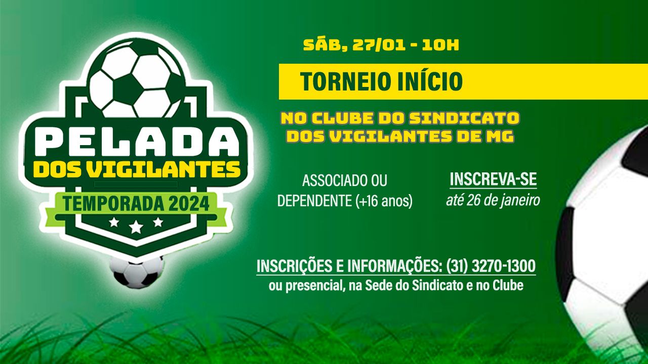 04/01/2024 - Atenção atletas, em janeiro começa mais uma tradicional Pelada dos Vigilantes, organizada pelo Sindicato dos Vigilantes de Minas Gerais.